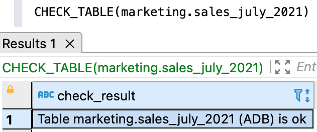 Ответ CHECK_TABLE с проверкой в одном датасорсе